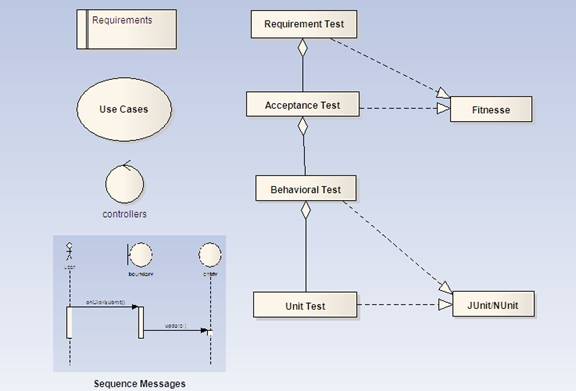In some organizations, the development team might own the "controller tests" while an independent QA team might own the "requirement tests". We can also generate test cases for messages on Sequence diagrams.